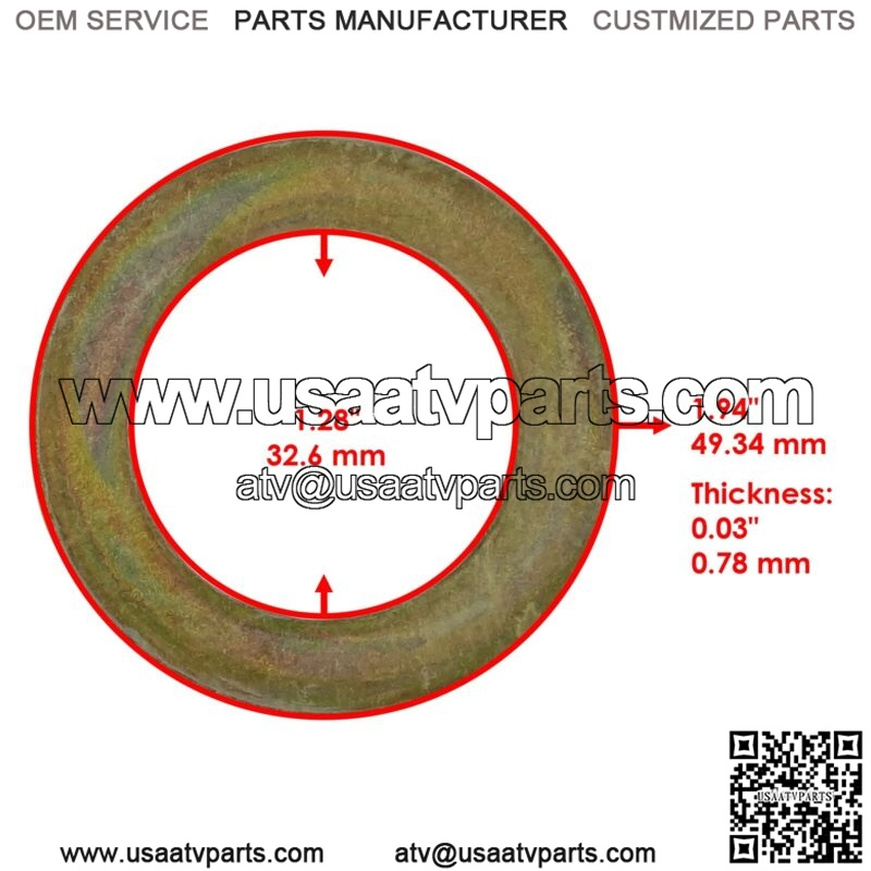 Premium Quality Replacement PartDrive Clutch WasherFor Arctic Cat Models:EXT 600 1997ZRT 600 1997ZR440 Sno Pro 1998-20004-Stroke Touring 2002-20034-Stroke Trail 2003Bearcat Wide Track 2003-2006Bearcat wide Track Turbo Articulating rail 2006F6 Firecat 600 EFI 2004F6 Firecat 600 Sno Pro 2004F6 Firecat 600R EFI 2006F7 Firecat EXT EFI 700 2004F7 Firecat 700 Sno Pro EFI 2004F7 Firecat 700R EFI 2006Sabercat 500 LX 2004-2005Sabercat 600 EXT EFI 2004-2005Sabercat 700 EXT EFI 2004-2005T660 Touring Taupe 2004T660 Turbo Touring 2004T660 Turbo Trail 2004Order Includes:1x Drive Clutch Washer : 0646-266Inner Diameter : 32.6 mm | 1.28 “Outer Diameter : 49.34 mm | 1.94 “**