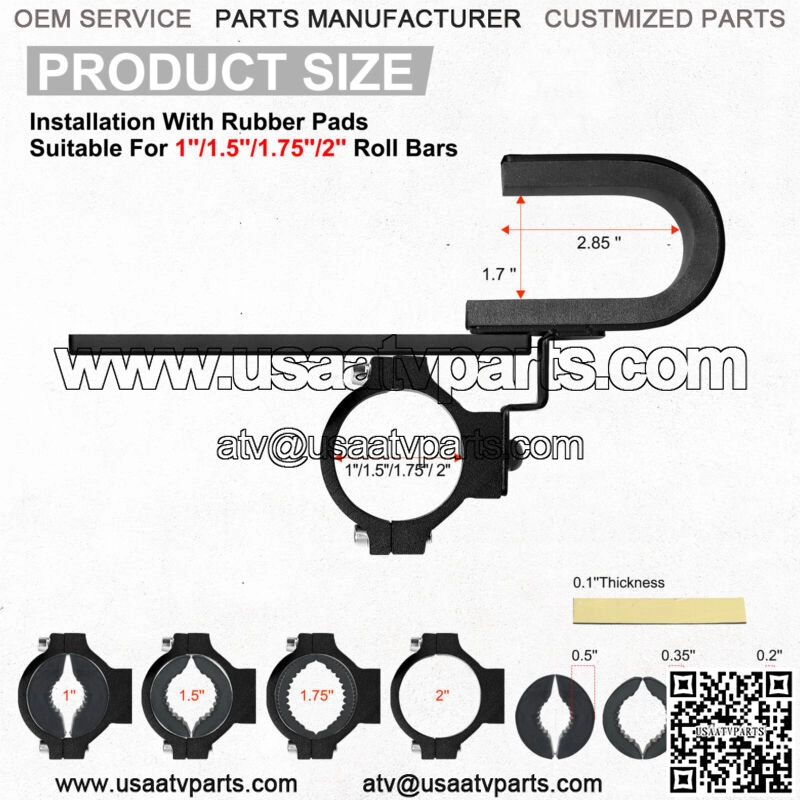 [SOLID MATERIAL] Gun racks for polaris ranger made of solid material metal, no plastic. The holders area soft foam rubber. Package with 1inch, 1.5inch, 1.75inch rubber insert which fit for most different diameter bar.
