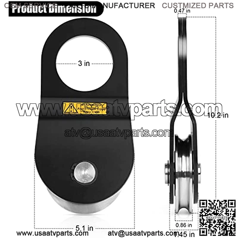 High Quality Material: Winch snatch block made of ultra-high tensile strength heavy duty steel, durability, bearing steel pulley running fast noiseless, anti-corrosion coatings surface scratch-resistant, grease fitting for easy service and smooth rotation.
