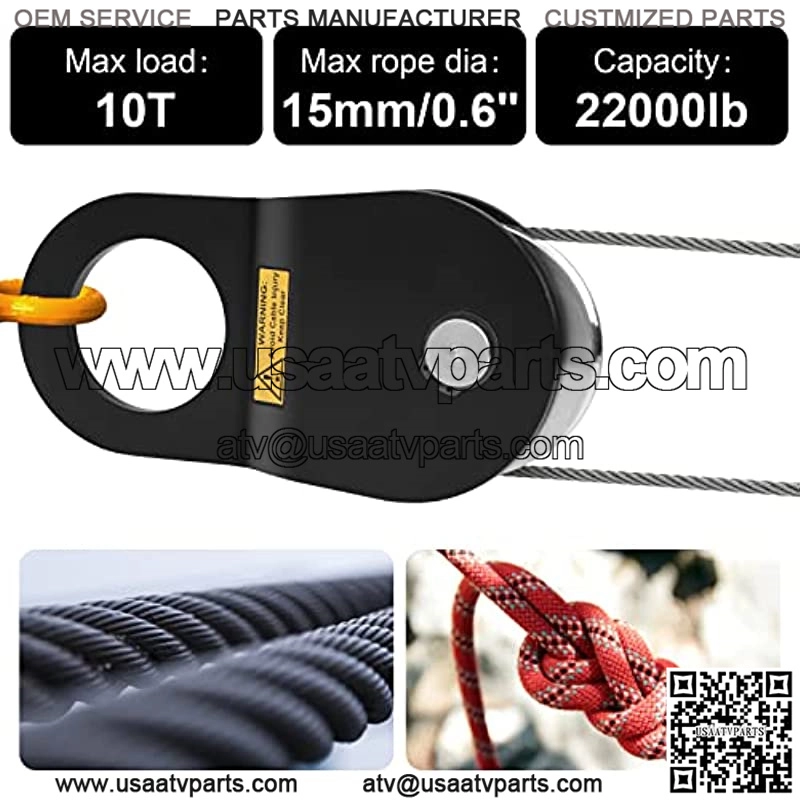 Universal Use: The winch snatch block pulley can accommodates max diameter is 15mm/0.6” wire rope and synthetic rope, double the pulling power when the