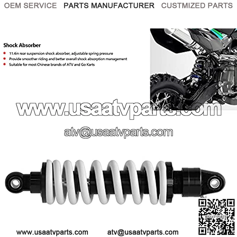 Universal 11.4in rear suspension shock absorber, the spring pressure can be adjusted according to your need.