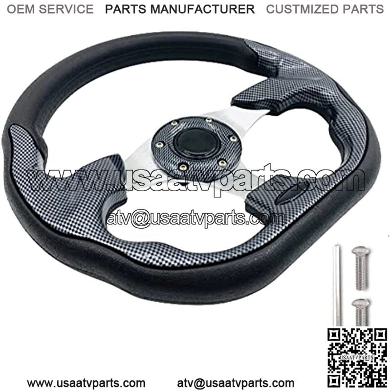 Universal Design: 12.5 inch diameter cool racing steering wheel Fits EZGO TXT RXV, Club Car and Yamaha golf cartsEnhanced overall appearance over the stock golf cart steering wheel??to provide you with a better and safer driving experienceWidely used in many occasions, golf carts, go-karts, yachts, ATVs, etcThe most important thing is to liberate a larger driving space for the belly, and the operation is more convenient and safeThe steering wheel needs an adapter to install, it does not include an adapter, if you don??t have an adapter, please purchase an adapter to install the steering wheelProduct Description There are Golf Cart Steering Wheel for Club car DS, Club Car Precedent, EZGO and Yamaha Golf Carts This golf cart steering wheel gives you better control of your golf cart. The spokes are brushed aluminum, Durable PVC material.Horn button is for aesthetic purpose only. 12.5 Inch Outer Diameter is fit for Most Golf Cart and Passenger Car and can be used on various Golf Carts, Go