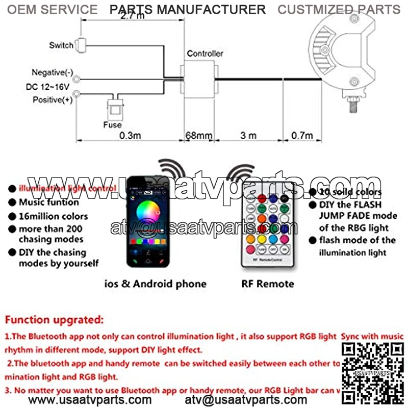 Upgraded: Miti-color 12″ 72w led work light with chasing RGB Halo strip, the RGB Halo light& strobe effect controlled by both of remote and Bluetooth APP on Android or iPhone, support RGB light effect Sync with music rhythm in music mode, support DIY light effect. It can light up your dark road, wider your vision and perfect for various Truck show such as offroad race, fleet parade, beach feast and music show.The Bluetooth app and remote not only can control the Main White light, but also can control the RGB Chasing Halo. Both functions can be switched smoothly. Don??t worry about the handy remote missing in future.High Quality 3w*24pcs premium Arc-leds with deep reflector cups, it emits brighter and farther illumination distance, Clearly Light up your Offroad Truck Way!Brightness & Strobe – Comes with a wireless remote, you can freely control the halos on/off, color changing, brightness & speed adjustment and Chasing Mode at anytime.Multi-Colored Application – IP68 Waterproof Rating wi