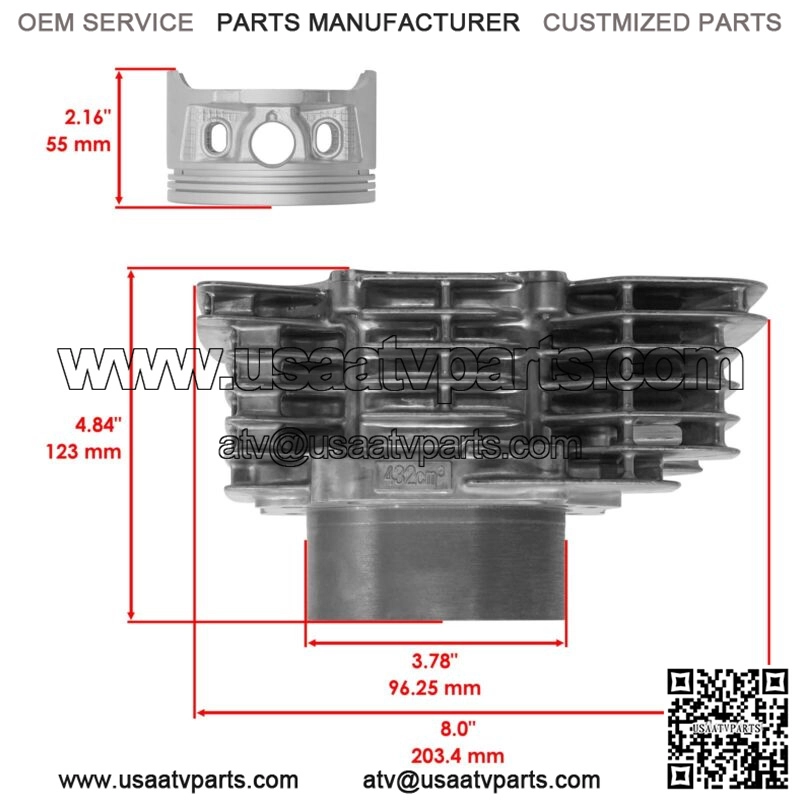 Cylinder KitFor Honda Models:FOREMAN 450 TRX450 4×4 ES S 1998-2004Order Includes: