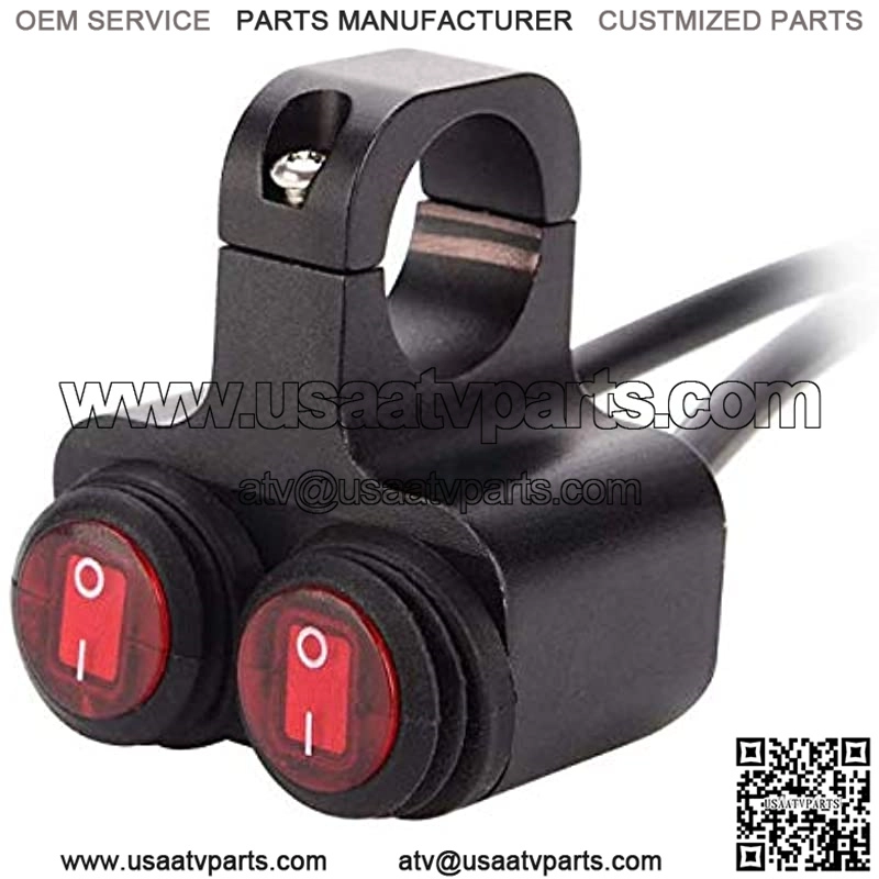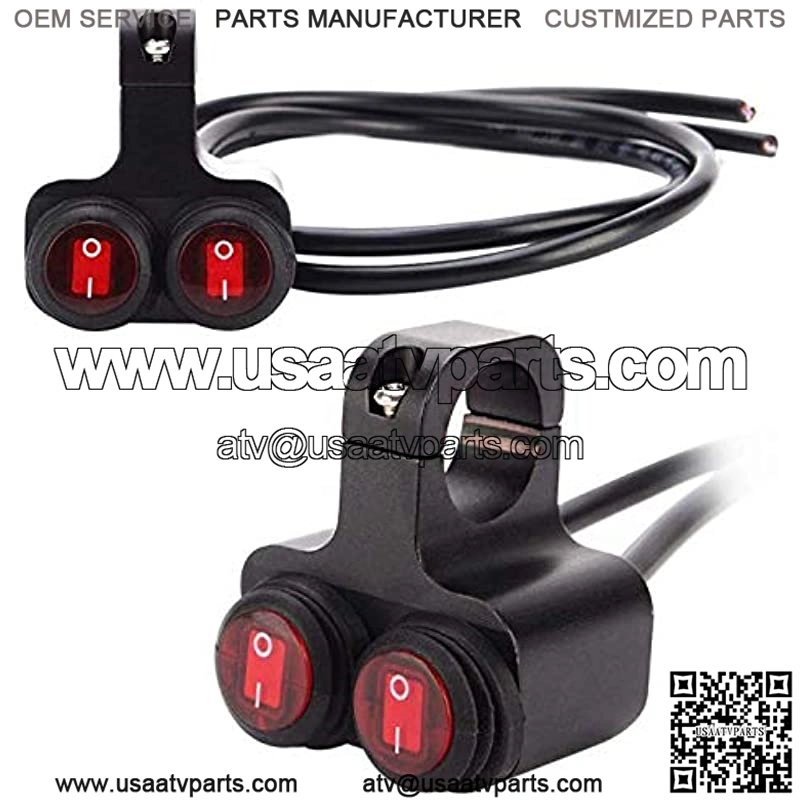 12v 16A Waterproof Motorcycle ATV 1 inch Handlebar Double Control Kill Button Switch Headlight Hazard Brake Fog Light ON Off Switches (Red) aluminium alloy Handlebars Switches
