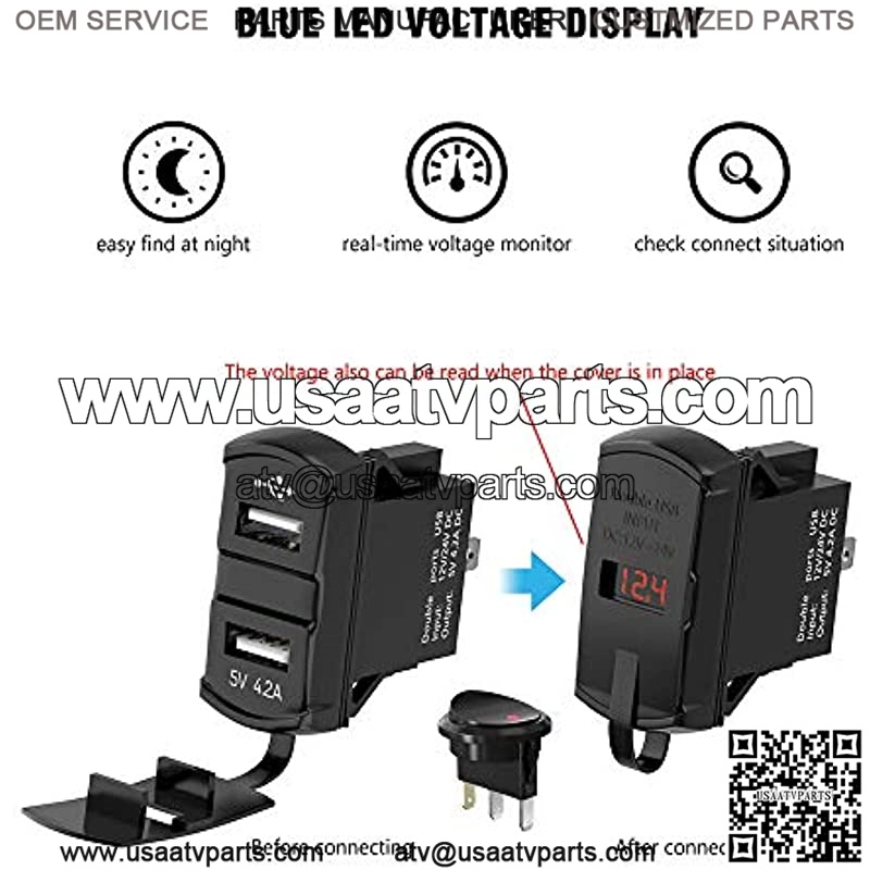 About this item ??Red Voltage Display??This car charger outlet builts in digital LED voltage monitor, dispalys the real-time accurate voltage status of your vehicle’s battery for preventing problems caused by low voltage, the red light also makes quick and easy to find USB ports in the dark or at night, and red display is as visible as in strong sunlight. ??LED Switch Red Light??Comes with easy to operate on/off high-quality red light power button for energy-saving and devices protection. ??Dual USB Fast Charger??Designed with dual USB ports supporting 4.2A fast charge, since its max single output is 2.1A. Built-in smart IC, will automatically detect your devices and simultaneously charging 2 devices at optimal speed, significantly saves charging time. ??Multiple Protection??Certified by CE & ROHS with Over-load, Over-current and Short Circuit Protection to ensure charging safety. meanwhile, built-in converse connection protection ensures the circuit won’t be burnt out