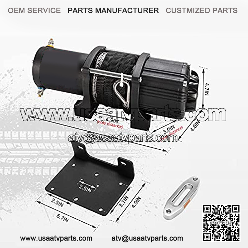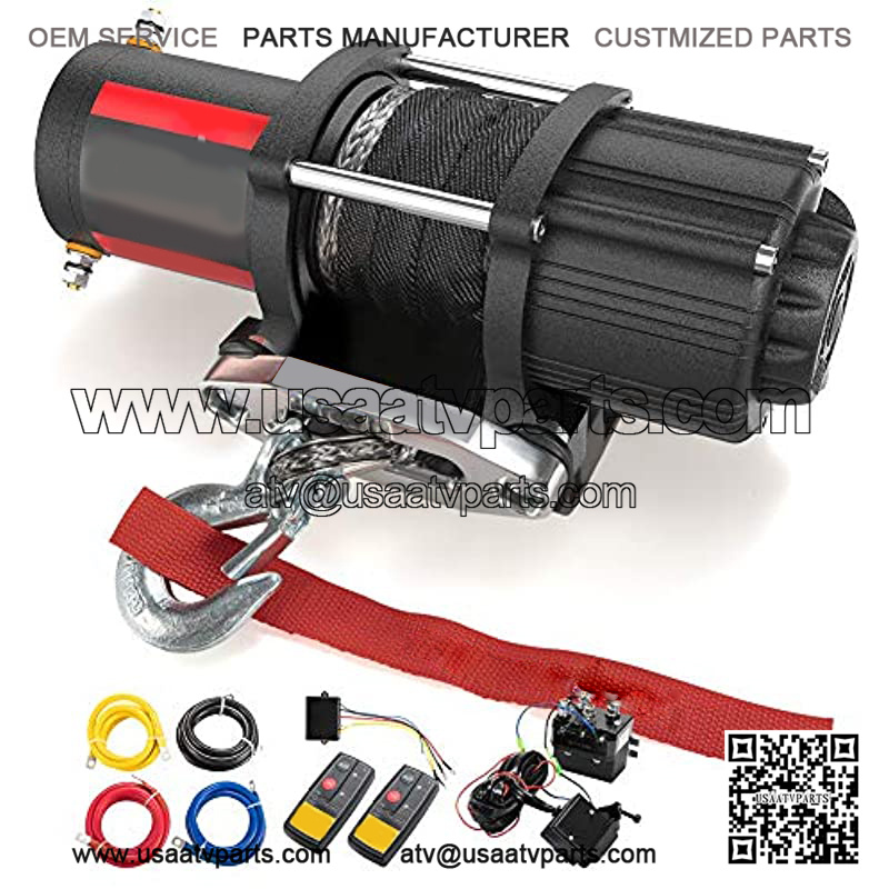 12V 4500LBS Electric Synthetic Rope ATV Winch Kits for Towing ATV/UTV Off Road Trailer with Wireless Remote Control Mounting Bracket