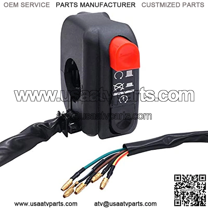 Motorcycle handlebar switch is universal 7/8???? diameter design, fitting on most of motorcycles, ATVs, scooters.Handlebar mount switch is used as on/off start kill switch, red button for kill function, black for start function.Easy to install: green, brown, black white, three wires for kill/off; black, red yellow, two wires for on/star