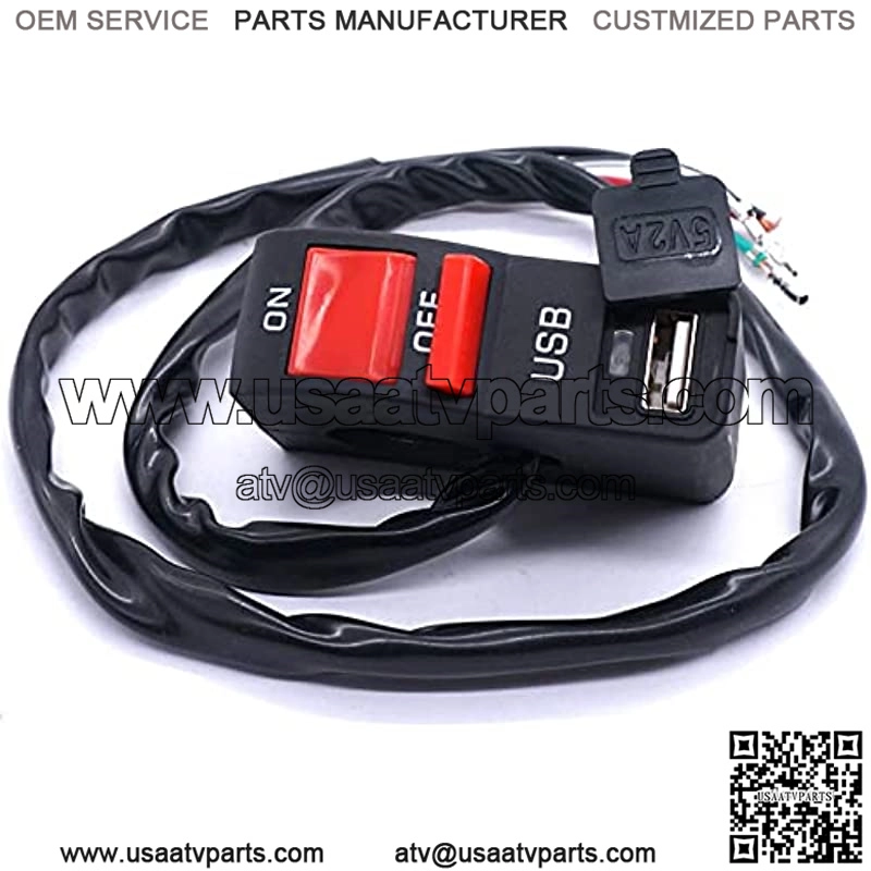 Motorcycle 22MM handlebar ON OFF headlight control switch with USB car charger Output voltage:12V USB port:5V-2A Suitable models:General Motorcycle Modification Switch Product description:A total of 4 wires are red/green/black/white.The black wire is the negative pole of t