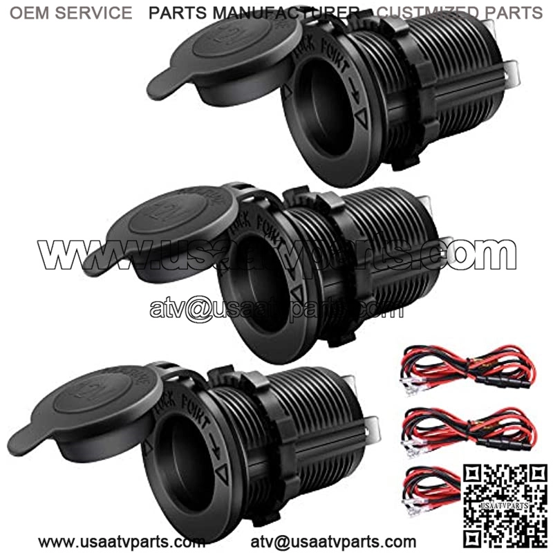 12V Cigarette Lighter Socket Car Marine Motorcycle ATV RV Lighter Socket Power Outlet Socket Receptacle Waterproof Plug 3Pack By MXRS