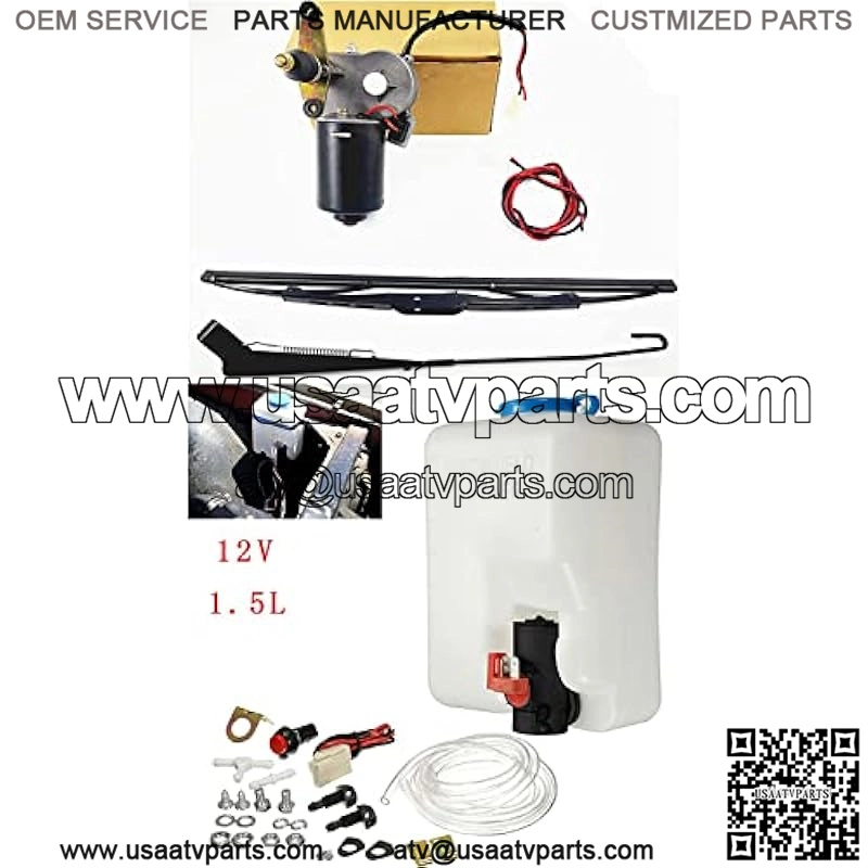 12V Electric Motor Universal UTV Windshield Wiper Kit with Windshield Washer Pump Kit Fit Polaris Ranger RZR 900 1000 Turbo etc. – 90??Sweep 13.7″ Blade