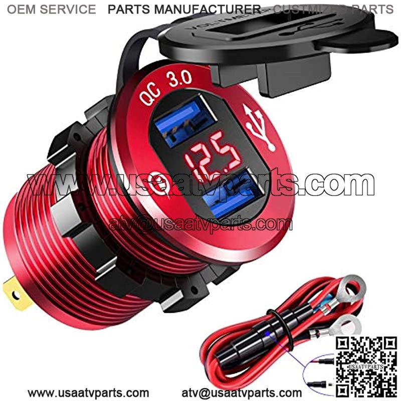 12V USB Outlet Quick Charge 3.0 Dual USB Charger Socket, USB Cigarette Lighter Socket with LED Voltmeter, Waterproof Aluminum Car Charger Adapter DIY Kit for Car Marine Truck Golf Cart RV, etc.