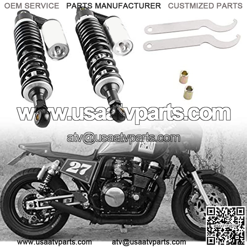 Universal fit for most 340mm Motorcycle Shock Absorber For Honda/Yamaha/Suzuki/Kawasaki;Dirt bikes, Gokart, ATV, Motorcycles and Quad. A pair of universal rear motorcycle shock absorbers.Absorber shock promptly to improve security in the clumpiest road and make you feel more comfortable.Best choice for replacement, style upgrading or bike modification.Placement on vehicle: Rear, left / right.Please kindly check the specific size above before placing the order to confirm it can fit for your vehicle.