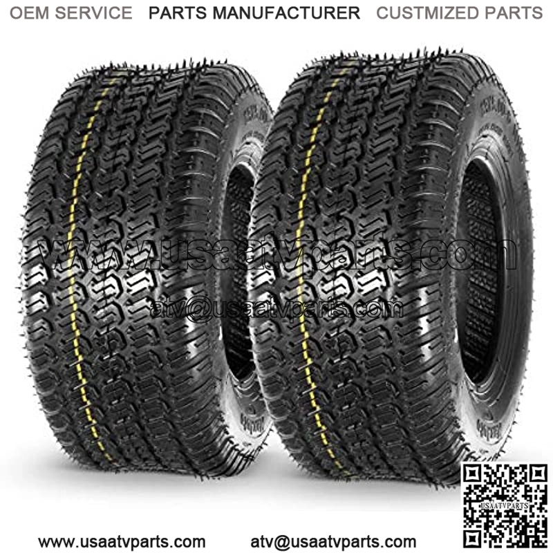Set of 2 13×5.00-6 13x5x6 Turf Tires for Lawn and Garden Mower 4PR P332 Prior to purchase, please check the size of the original tire on your vehicle to ensure the size of the tire to be purchased is correct. Size:13×5.00-6; Tread Depth: 3mm, Rim Width: 3.5″, SW (mm): 122, OD (mm): 316, Max Loads (lbs): 440, PSI: 40 Type: Tubeless; Tire only – Wheel not included We ship your orders depending on their weight, when you make a single purchase of two or more tires, these tires will be packed in multiple packages which may not arrive at their destination at the same time.