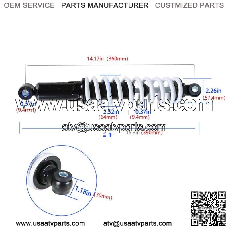 Specification:Travel length: 55mmRated: 850lbs Fits:For (SU-34) (JZB-AA005) 3250A/3300 ATV QUAD BIKE Please measure the size of your stock shock for matching before buying