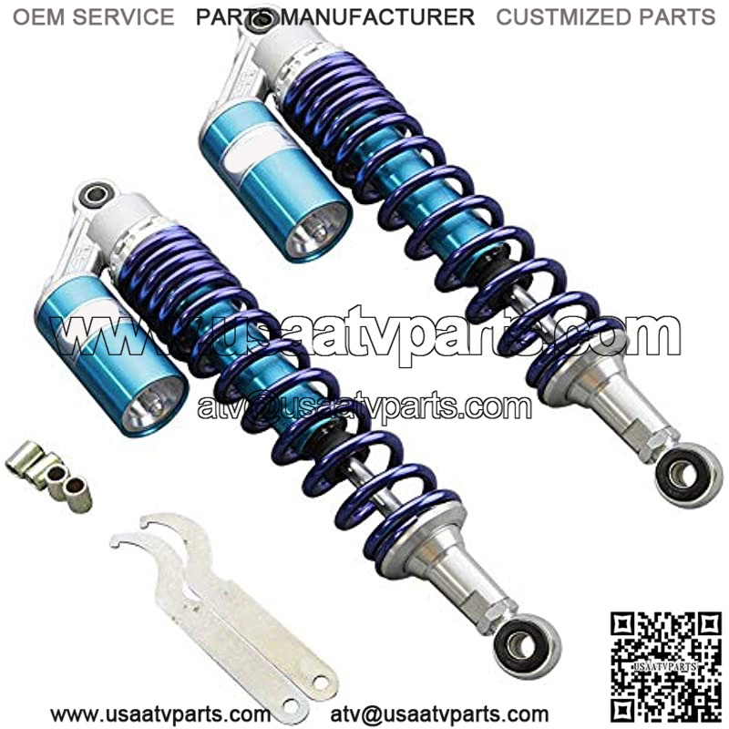 Motorcycle shock absorber universal fit for most vehicles. Package included: One Pair Shock Absorber, 2 x Wrench, 2 x Bushing