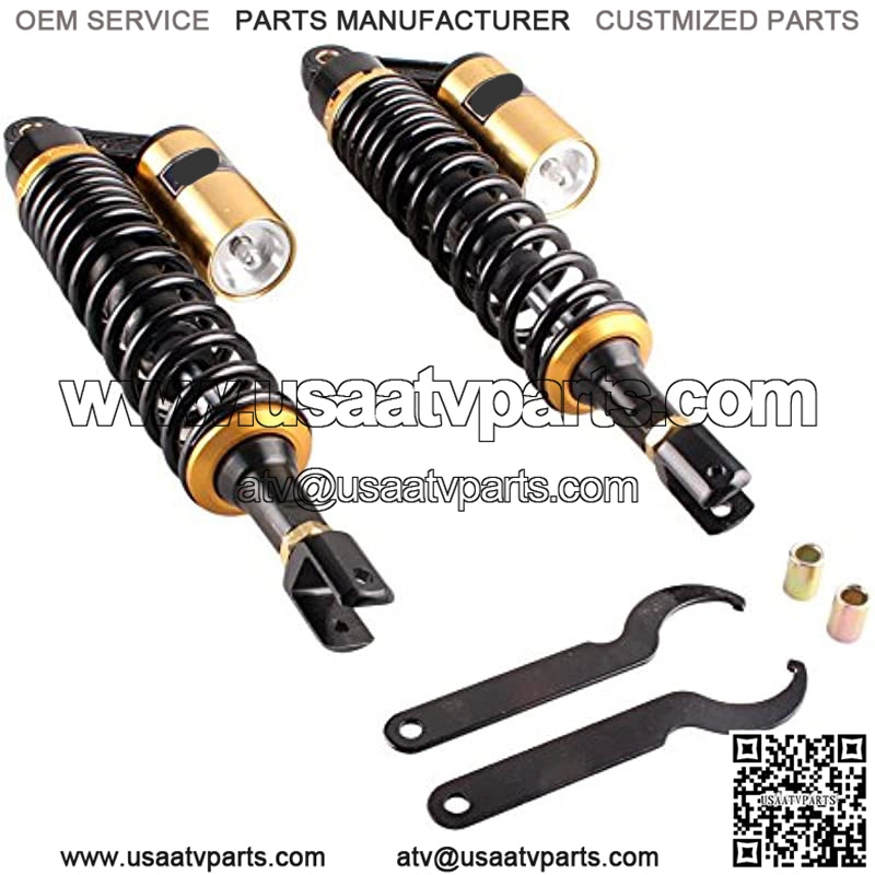 15inch 390mm Pair Motorcycle Shock Absorber Eye to Clevis Rear Suspension Universal For Honda Suzuki Yamaha Kawasaki ATV Go Kart Quad Dirt Sport Bikes Black & Gold (A pair)