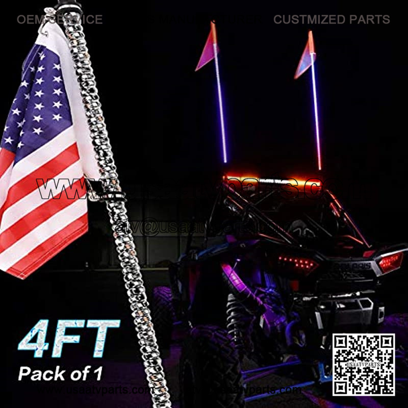 WIDE APPLICATION – Universal 4FT RGB LED whip light can be installed in anywhere suitable location. Applicable models are extremely wide. It also can be used as a signal light, warning light and chase light. Perfect fit for UTV, ATV, Polaris, Can-am, RZR, Truck, Off Road, Dune Buggy, Sand Rail, Four Wheeler, Go Kart, Motorcycles, etc.