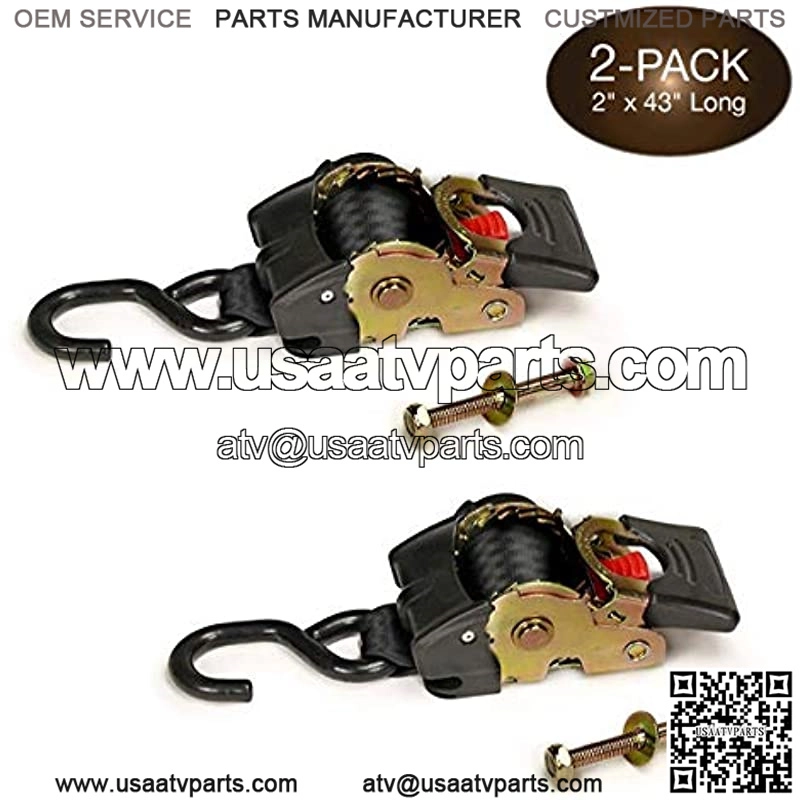 2 Auto Retract NO-RATCHETING Bolt-Down | 2″ x 43″ Retractable SELF-CONTAINED Compact Bolt-on Cargo Strap Tiedowns for Motorcycles, Bikes, ATVs in Trailers, Garages, Trucks, Pickups