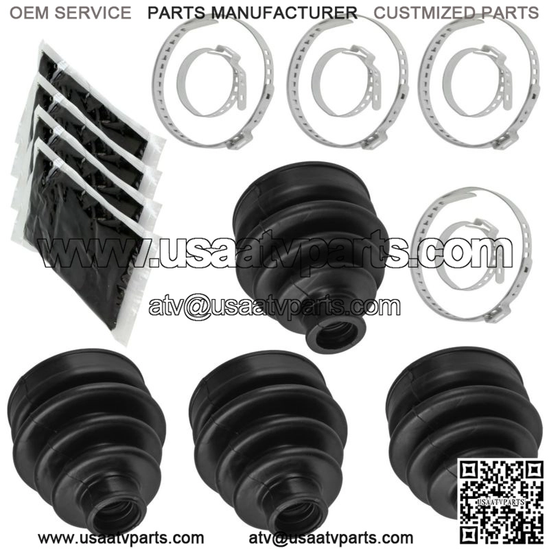 Premium Quality Replacement PartFRONT AXLE INNER AND OUTER CV BOOT KITFits Following YAMAHA Models:GRIZZLY 450 YFM450FG 4WD 2008-2013GRIZZLY 450 YFM450FG 4WD SPECIAL EDITION 2008GRIZZLY 450 YFM450FG 4WD HUNTER EDITION 2008-2013GRIZZLY 450 YFM450FG 4WD EPS 2011-2013GRIZZLY 450 YFM450FG 4WD HUNTER EDITION EPS 2011-2013GRIZZLY 450 YFM450D 4WD 2014GRIZZLY 450 YFM450D 4WD HUNTER EDITION 2014GRIZZLY 450 YFM450P 4WD EPS 2014GRIZZLY 450 YFM450P 4WD HUNTER EDITION EPS 2014Order Includes:2x Front Inner Axle Boot Kit2x Front Outer Axle Boot Kit
