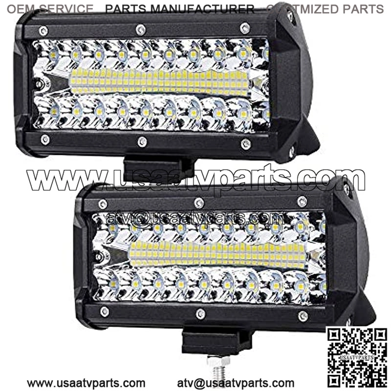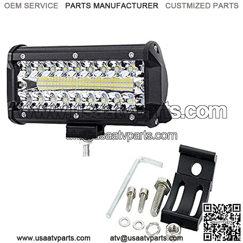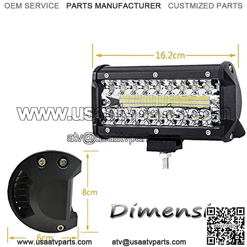 High brightness: 150 watt 6.5 inch LED work light with 50 LED chips, ultra high brightness, 3500 lumens output, 6500 k cool white long-range radiation and a large viewing angle.Headlight and floodlight combination beam: Headlights with high light intensity, long irradiation distance; Floodlight wide light area, long irradiation distance.Protection level: IP67 design, good sealing. Stainless steel frame, waterproof, dustproof and shockproof. High quality die-cast aluminum housing, non-slip and wear-resistant, multi-layer heat sink, better heat disation effect.Adjustable bracket: adjust the irradiation angle up and down, adjust the fixed position left and right, double screws to reinforce the fixed, easy to assemble.Wide Application: Suitable for most of vehicles such as off-road lighting, trucks, trailers, boats, ATV, UTV, SUV, cars, forklifts, trains, jeeps, motorcycles, etc.Specifications??6.5-Inch 150W Spot&Flood Light Bar Product Name ??6.5-Inch 150W Spot&Flood Light Bar LEDs Type??