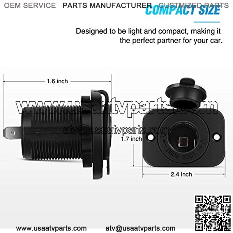 Socket mounts with a retaining nut, not a press fit that can vibrate loose. Can be used with a locking plug. Easy to install, ??+?? to the positive pole. ??-?? to the negative poleWorks with any standard cigarette lighter plug and suitable for any 12V – 24V vehicles (motorcycle, boat, truck, ATV, RV) in need of extra and heavy duty cigarette lighter plug socketsThe safety Charging design will prevent your devices from over-heat, over-current, over-voltage, over-load, and short-circuitWaterproof and dustproof by a rubber cover, protects the internal circuit, effectively enhance its lifespanPackage includes: 2 pack Car cigarette lighter, 4 Insulated Terminals, 4 screws, 2 Black/Red wires with 10AfuseFit Type: Universal FitProduct Description 2 Pack 12V Cigarette Lighter SocketApplication: Suitable for any 12V – 24V vehicles (motorcycle, boat, truck, ATV, RV) in need of extra and heavy duty cigarette lighter plug sockets. . Can be used with car charger to charge their cell phones, GPS, car a