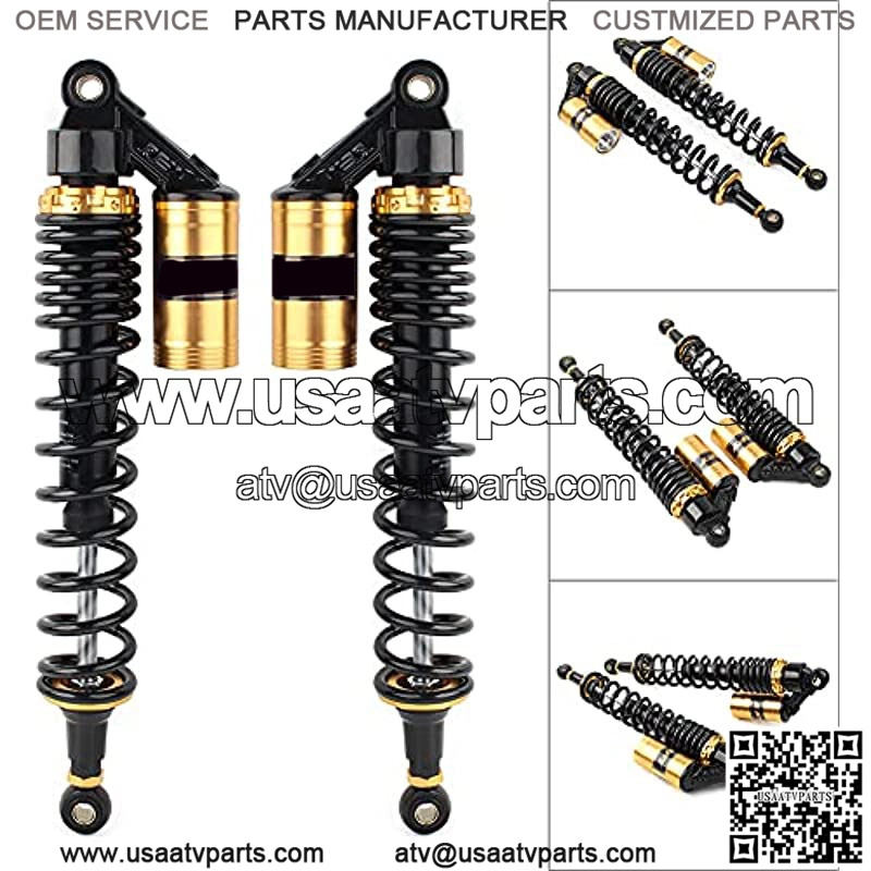 2 Pcs Motorcycle 440mm 17.3″ Air Shocks Black & Gold ATV Shock Absorber UTV Shocks Universal For ATV UTV Go Kart Quad Dirt Bikes