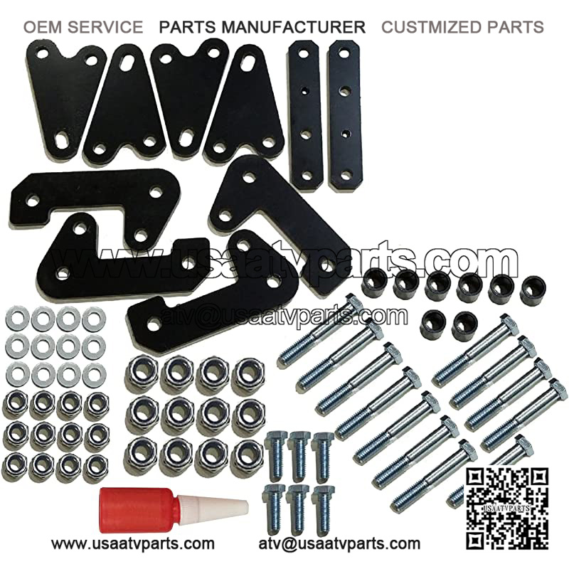 Bigger. Badder. BOLDER. Take your ATV to the edge with High Lifter??s 2?? Lift Kit. Increase your ground clearance and make room for larger tires to dig deep and ride hard in most any terrain. Our engineers and staff have spent over 20 years perfecting the ultimate ATV lift kit. The product An easy-to-install, bolt-on lift that consistently measures truer over competitor products. The 2?? Lift Kit relocates the shock mounts to provide additional lift making room for larger tires and tightens suspension. Each Lift Kit part is precision cut and zinc plated for durability and reliability in any environment. 2?? Lift Kit Features: ?? All hardware needed for successful installation ?? User-friendly instructions ?? Bolt-on application; takes approximately 1-2 hours for install ?? Zinc plated ?? Front and rear lift