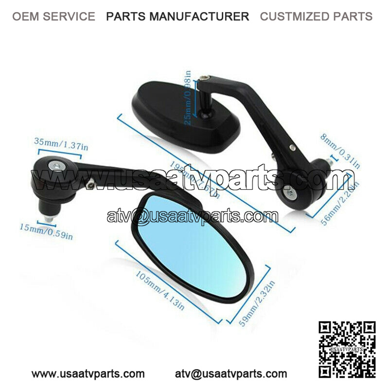 2 Universal Motorcycle ATV Black 7/8″ 22mm Handle Bar End Rearview Side Mirrors