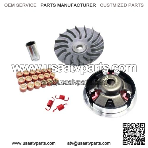 Performance primary clutch sheave assembly with configurable roller weights. You can set it to faster take off, higher top end or overall balanced modes.