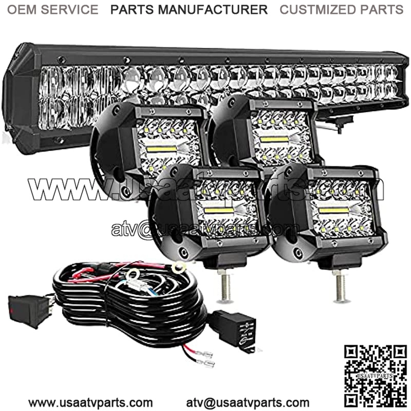 20Inch 126W 5D Led Light Bar Spot Flood Combo Beam + 4Pcs 4″ 60W LED Work Light Pods Driving Fog Lamp with Rocker Switch Wiring Harness for Truck ATV UTV SUV 4X4 Boat