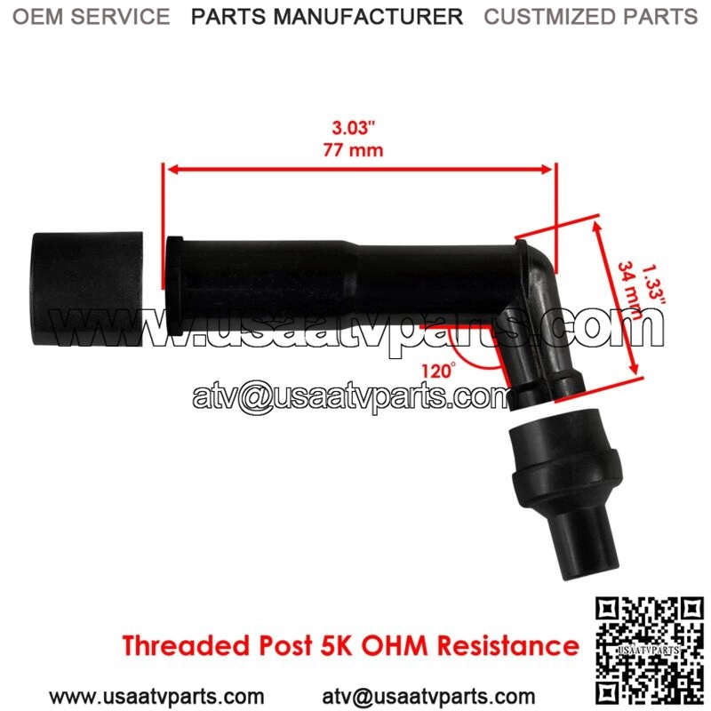 Premium Quality Replacement PartIgnition Coil with Spark Plug Boot CapFor Kawasaki Models:Vulcan 1600 VN1600A Classic 2003-2005 2007 2008Vulcan 1600 VN1600D Nomad 2005-2008Vulcan 1600 VN1600E Classic 2006Vulcan 1600 VN1600G Nomad 2006Order Includes:1 x Ignition Coil | 21121-0003 211210003Length: 103.7 mm | 4.08″Height: 58 mm | 2.28″Mounting Hole Distance: 79.8 mm | 3.14″1x Spark Plug Boot | 21160-1091 211601091Angle: 120 DegreesLength: 77mm | 3.03″Height: 34mm | 1.33″Resistor: 5k OHM**