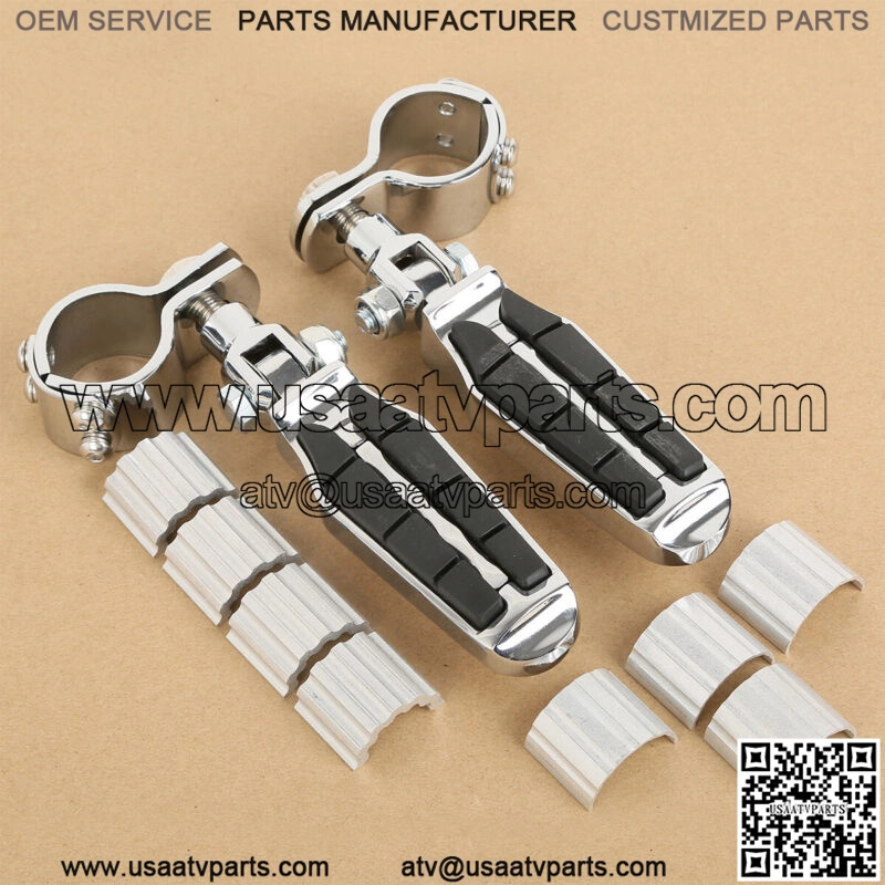 Kit includes chrome clamps ,male mount-style Footpegs, and necessary mounting hardware (As Picture shown)