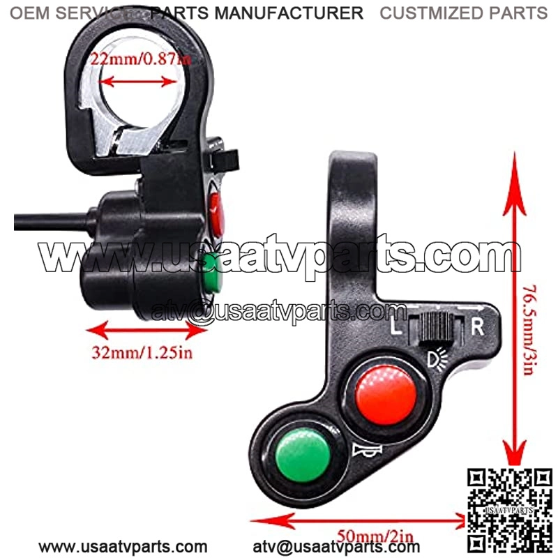 Product features:Headlight Switch, Horn switch, Turn Signal switch,Multifunctional motorcycle light switch.Suitable for most motorcycle with 7/8″ handle,electromobile,ATV,scooter.etc.