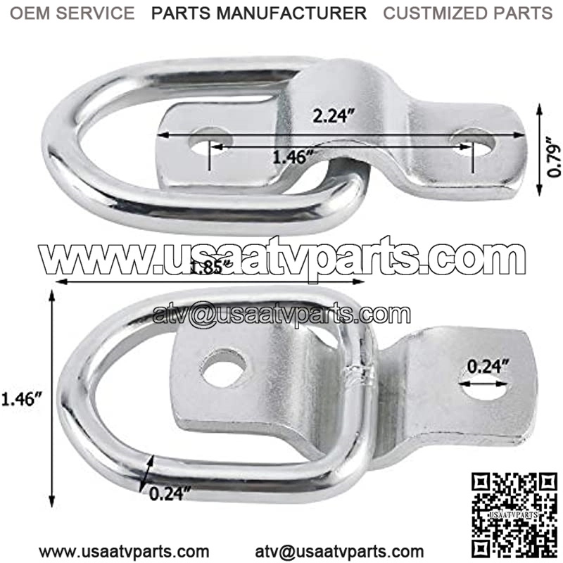 ??Size??D ring size: 1.85″ x 1.46″ x 0.24″; Bracket Size: 2.24″ x 0.79″; Hole Diameter: 0.24″.