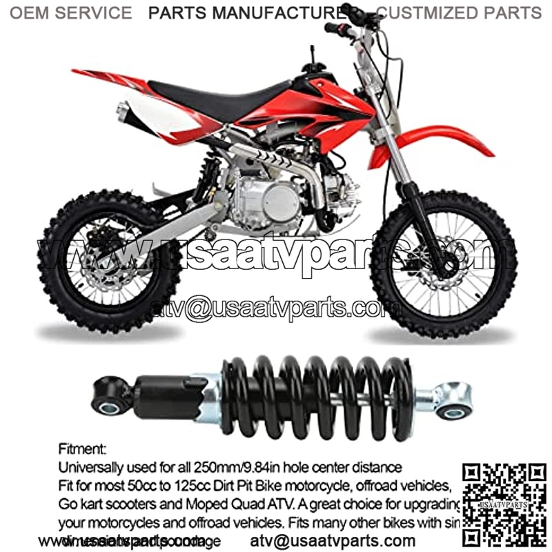 Fitment: Shock strut fits for most 50cc to 125cc Dirt Pit Bike, Go kart, scooters, Moped Quad, ATV. Universally used for all 240mm/9.45in hole center distance. Fits many other bikes with similar dimensions and poundage.Professional manufacturing, perfect match with your model.Please kindly check the compatibility and specifications before ordering.