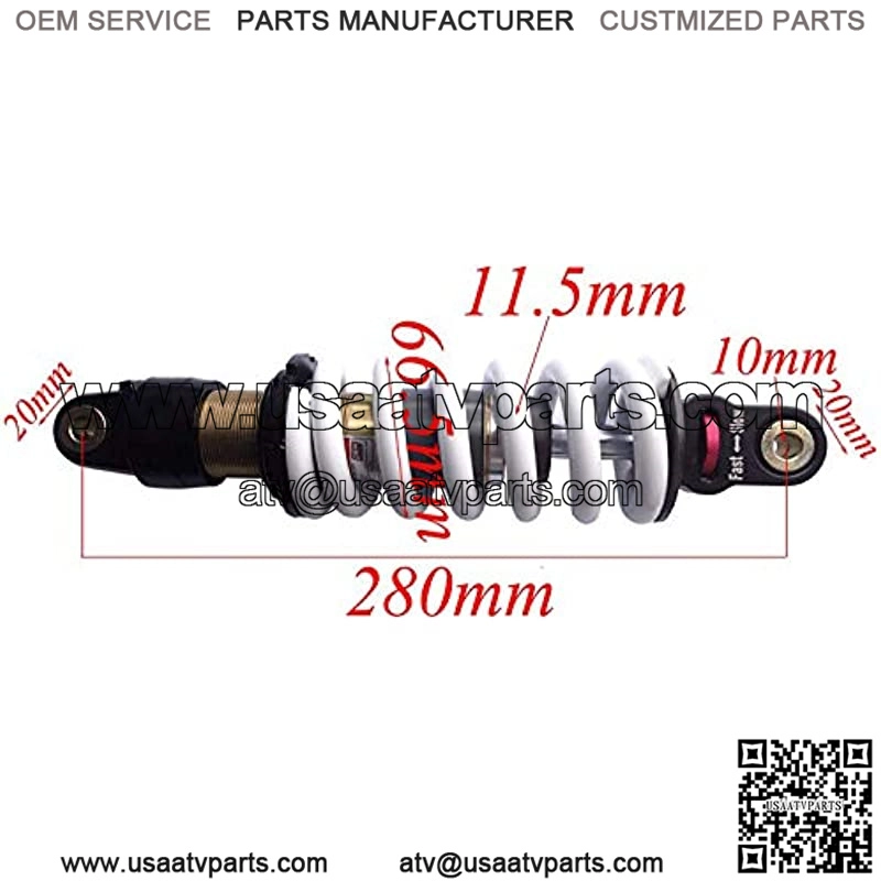 Compatible rear suspension spring/shock absorberFor most Dirt Bike, Quad, ATV, Pit with the length of 280mm,Rod size of 11.5mm and real heavy stuff rating of 850lbs.