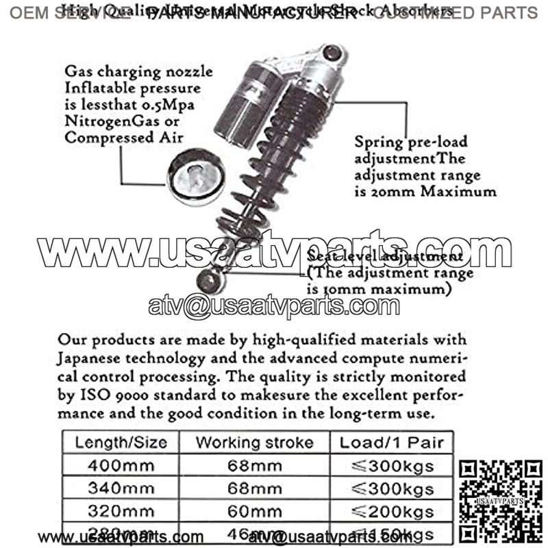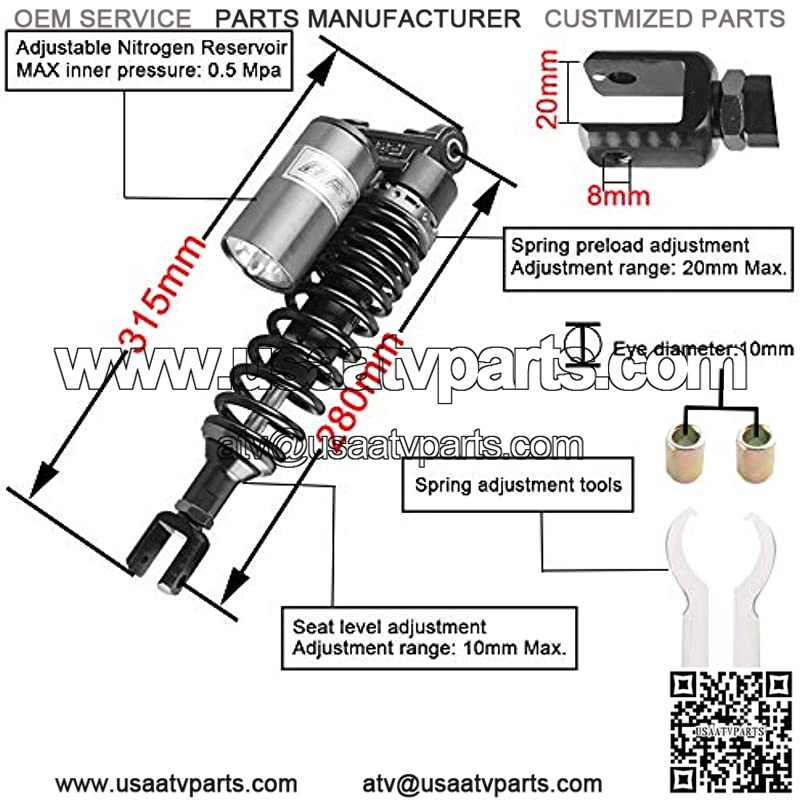 Work perfectly on most 150cc~750cc street bikes, Scooters and Moped Quad (ATV) with shocks of 280mm eye to clevis distance