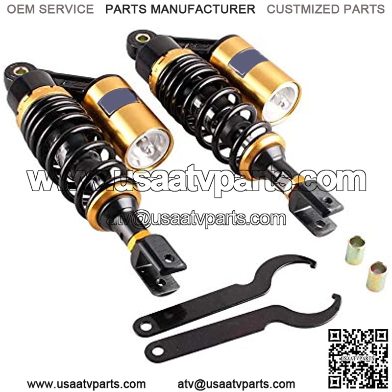 2PC 280mm Motorcycle Air Shock Absorbers Rear Suspension Universal Fits Most 150cc~750cc Street Bikes, Scooters and Moped Quad (ATV) Black Gold, Spring Width 60mm