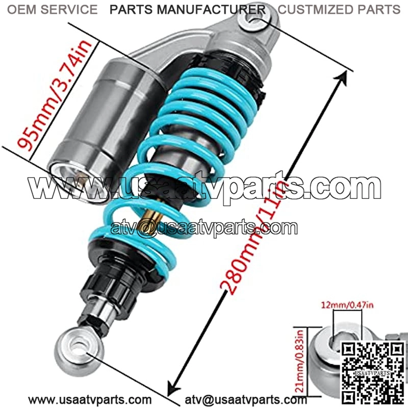 High-performance shock absorber: The suspension provides smoother driving and better overall damping management, improving driving comfort, motorcycle handling, and driving safety Universal fits for most 150cc~750cc street bikes, Karting(Go-kart), Scooters, and Moped Quad (ATV).