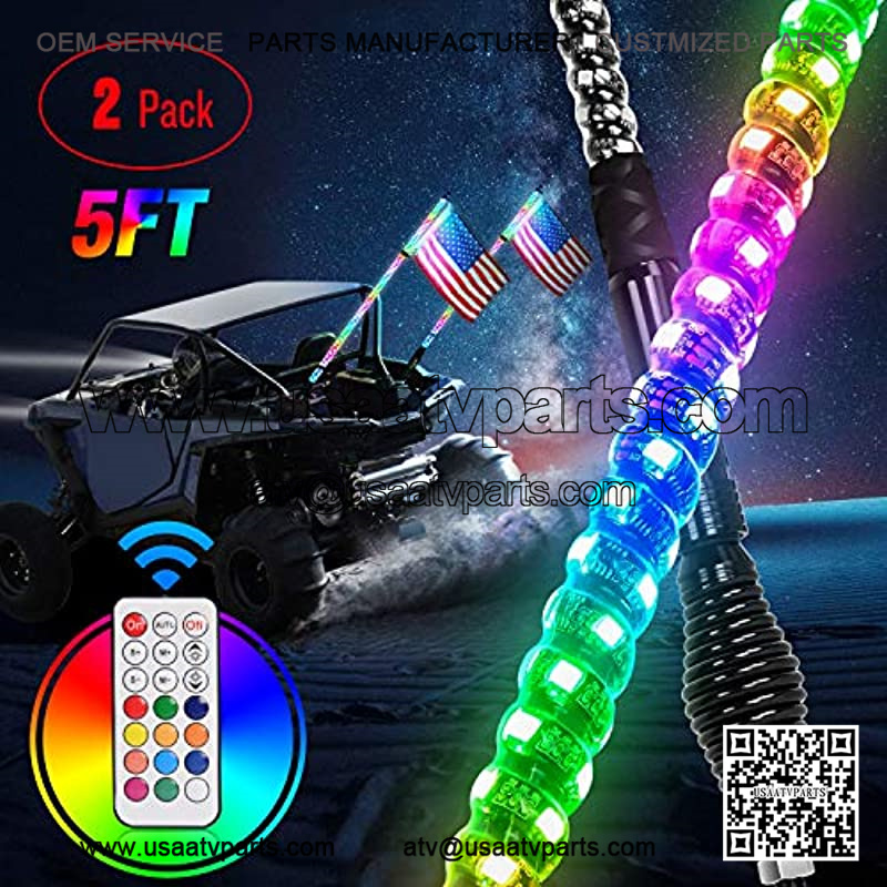 2PCS 5FT Spiral RGB Led Whip Light with Spring Base Chasing Light RF Remote Control Lighted Antenna Whips for Can-Am ATV UTV Dune Buggy Offroad Truck