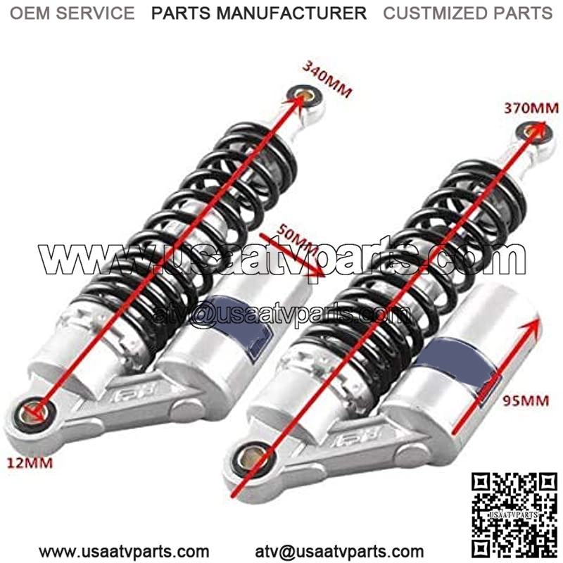 2pcs Adjustable 340mm Motorbike Air Shock Absorbers Universal Fit for Honda Suzuki Yamaha Kawasaki ATV Go Kart Quad Dirt Sport Bikes (SilverBlack, 340MM)