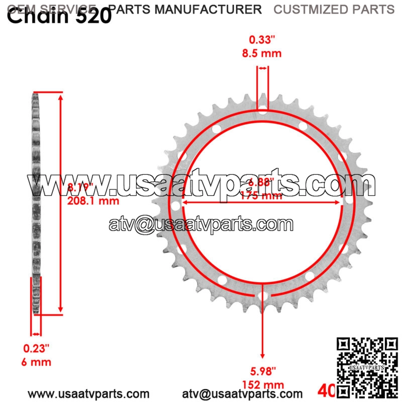 2XJ-25440-21-00 2XJ254402100 Rear Wheel Chain Sprocket for Yamaha 40 Teeth