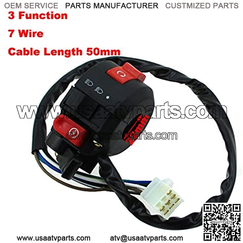 Fitment: 3 Function 7 Wire Handle Kill Start Light Choke Switch For 50cc 70cc 90cc 110cc 125cc ATV Quad Taotao Sunl Roketa Kazuma.