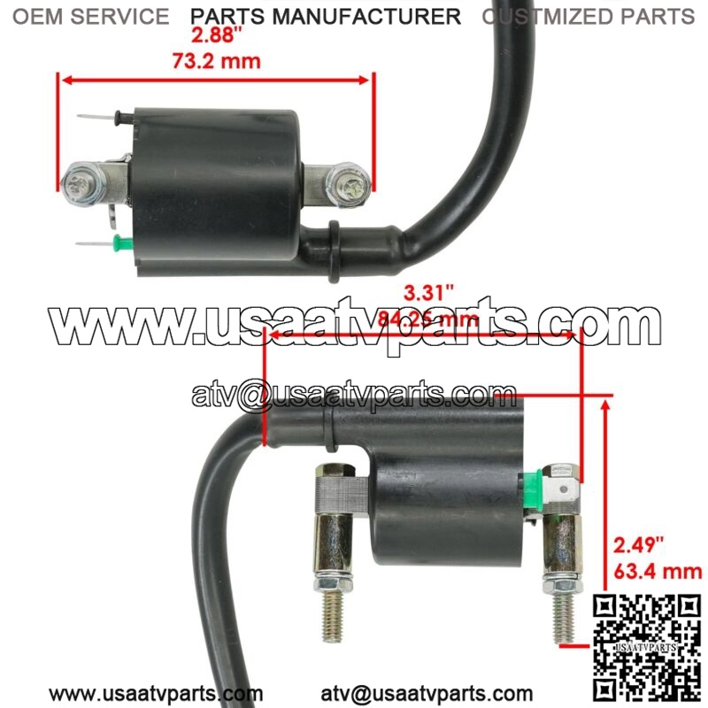 Premium Quality Replacement PartIgnition Coil And CapFor Honda Models:Pioneer 500 SXS500M2 2015-2022Pioneer 520 SXS520M2 2021-2022Order Includes:2x Ignition Coil : 30510-HL5-A01Height : 63.4 mm | 2.49 “Length : 84.25 mm | 3.31 “Mounting Hole Space : 73.2 mm | 2.88 “2x Ignition Coil Cap : 30700-MBN-671, 30700-MEA-671Height : 60.5 mm | 2.38 “Length : 36.1 mm | 1.42 “Angle : 160 Degrees**