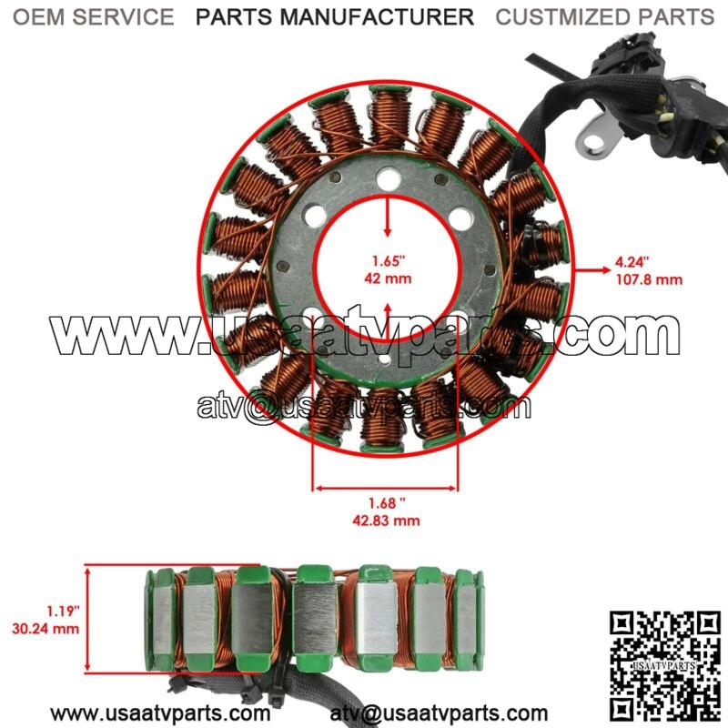 Premium Quality Replacement PartStatorFor Honda Models:CRF250L 2013-2020CRF250RL 2017-2020CRF250RLA 2017-2020Order Includes:1x Stator : 31120-KZZ-901Height : 30.24 mm | 1.19 “Inner Diameter : 42 mm | 1.65 “Outer Diameter : 107.8 mm | 4.24 “**