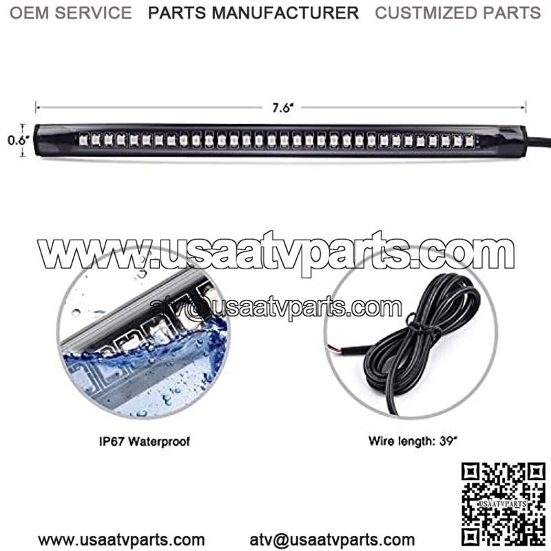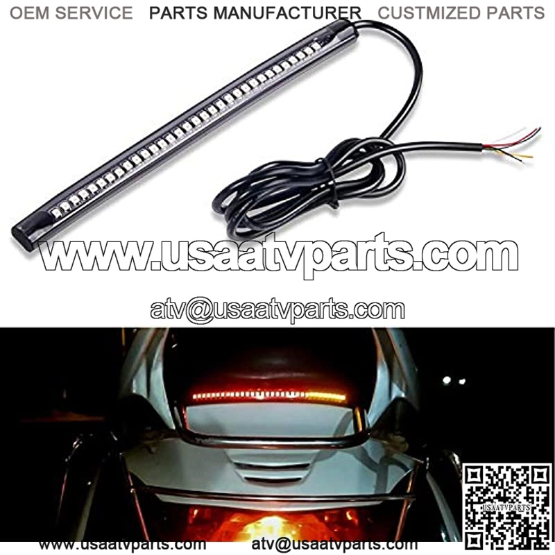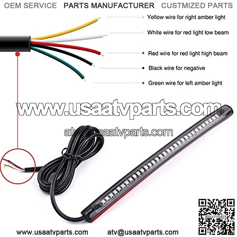 Fitment: Fits all Motorcycles ATVs Mopeds Snowmobiles with DC 12V. Also Universal fit all Cars SUV Vans Trucks with DC 12V. Specification: Length: 7. 6 inch Base Color: Black LED light Color: Red and Amber Voltage: 12V Number of LED: 32 x 3528SMD LED Cable Length: 39 inch Material: Flexible PVC Rubber 5 wires connection Black for Negative, Red for Brake Light, White for Running Light, Green for Left Turn Signal and Yellow for Right Turn Signal. Package Included: 1 X LED Light Strip