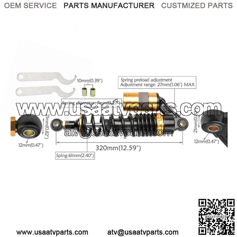 320mm 12.5″ Rear Air Shock Absorber Suspension Kit For ATV Quad Coolster 125cc