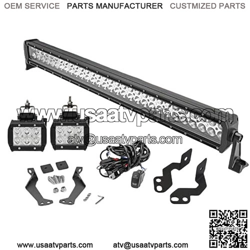 32In 180W LED Front Windshield Straight Light Bar Mount Bracket Kit and 3In 18W Side Pillar Roll Cage LED Light Pods Mount Bracket w/Rocker Switch Wire Kit Fit Compatible with Polaris RZR XP 1000 900
