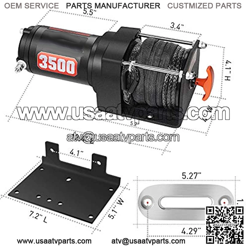 3500 lb. Advanced 12V DC Electric Winch, Off Road Waterproof, Synthetic Rope, Mount, for Sports car, ATV